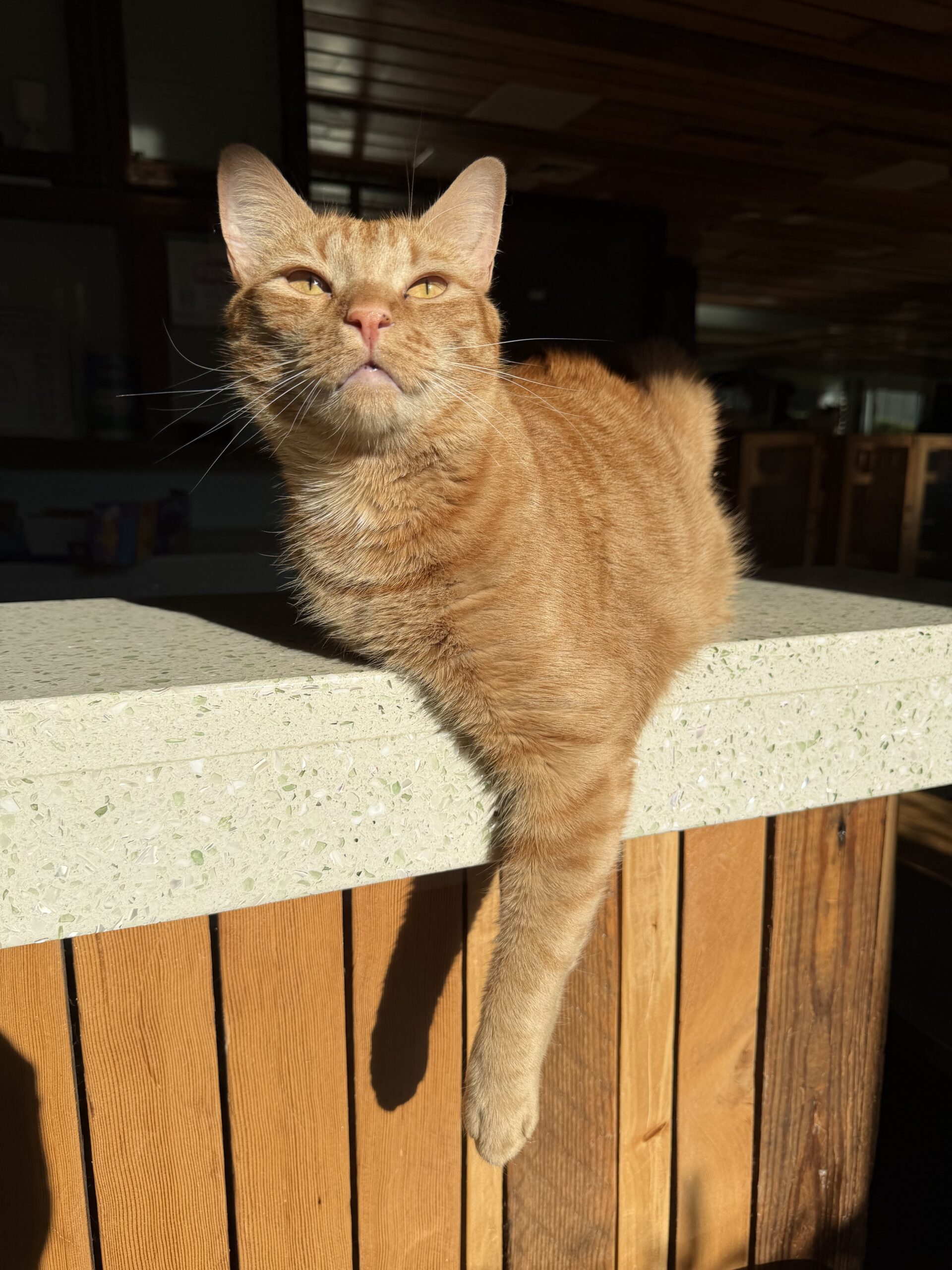Jack Orange is a large cat who was born in our shelter to a Cat mom who was placed at the city kill shelter, where we pulled her out of. We pulled her out of there a day before Jack Orange was born, so he has never seen a bad day in his life. He has been with us for a while only because we hoped to adopt him along with his mom, named Dot, as they were pretty bonded for a long time. The time has come for Jack Orange to find his own home now where he will be loved by someone who will be committed to his well being, for life. His mom is a bit of a tricky cat that made the adoption as a duo impossible so far. Over the past few months she seems to have made other, new friends and they are no longer dependent on each other. In other words, adoption together is no longer necessary. We are excited to find the right person who will love this LARGE Love bug furever. He is a bit of a goof and we love that about him. He is friendly, litter box trained, always looking for attention, and the first one to meet us at the door.. also the first one who will run to you when you open the can of wet food. He might benefit from a bit of a controled food amounts that the shelter can't always provide, because he tries to eat everyones food once he is done with his. Jack Orange has been neutered, microchipped, Snap Tested negative and is an all around, healthy fabulous cat who now needs to find his forever home. Before he will go to his new home, as routine we will make sure his stool sample is clear as we want to make sure all our cats that leave our shelter start their lives with a clean bill of health. If this cat sounds like your dream cat, please fill out an application. We will responds as soon as we can. We keep our human traffic limited in our shelter due to time, and to limit stress for the animals. We will contact you once you fill out the application.
